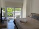 Departamento amoblado de un dormitorio con una cama matrimonial. Cuenta con un aire acondicionado en la habitación y otro en el comedor. El departamento tiene cocina y vajilla para cocinar, un TV Smart y acceso ilimitado a internet. Incluye ropa de cama, toallas y un kit higiénico de bienvenida. Ideal para un solo huésped o parejas que buscan un departamento con más privacidad.
